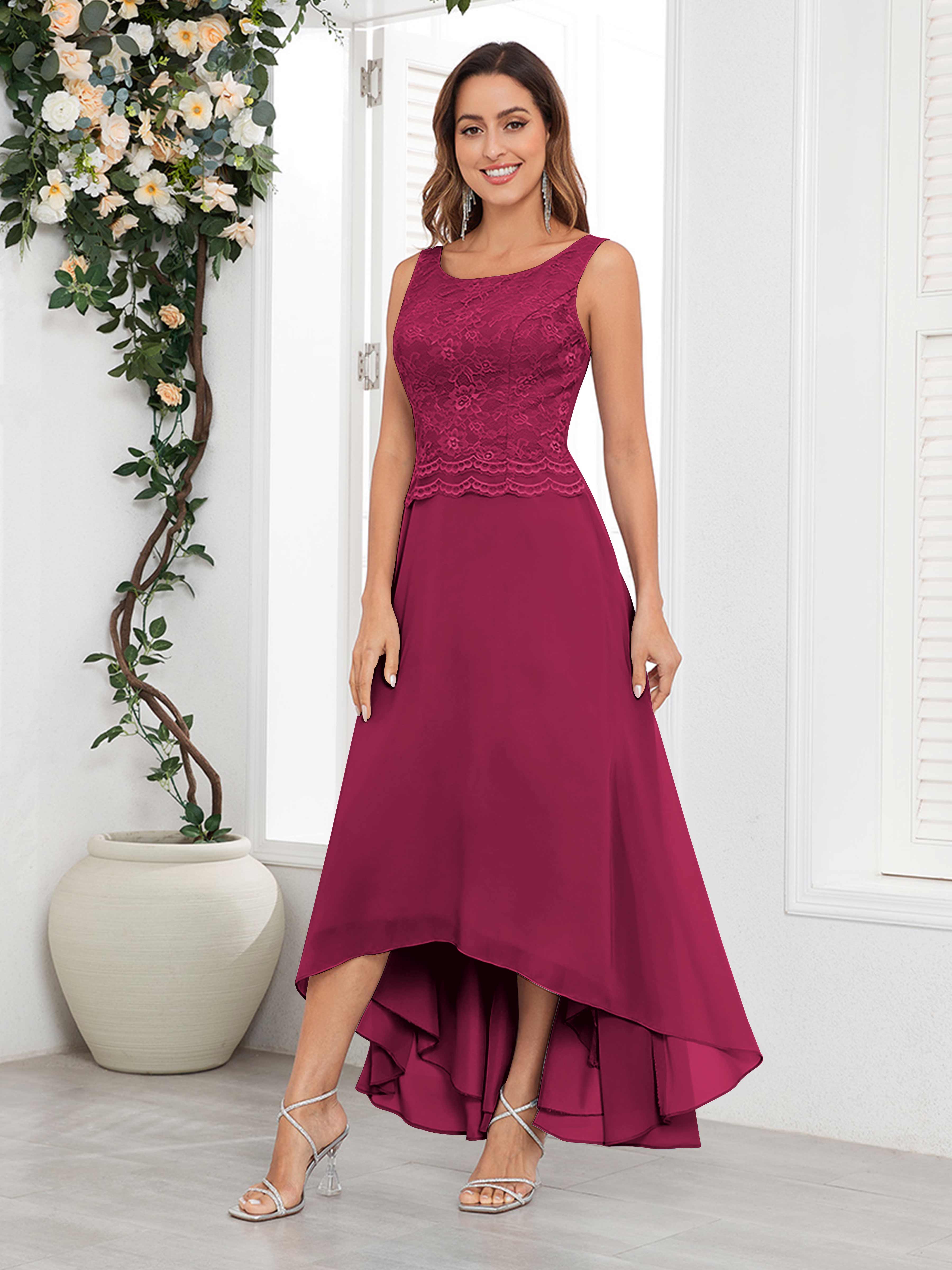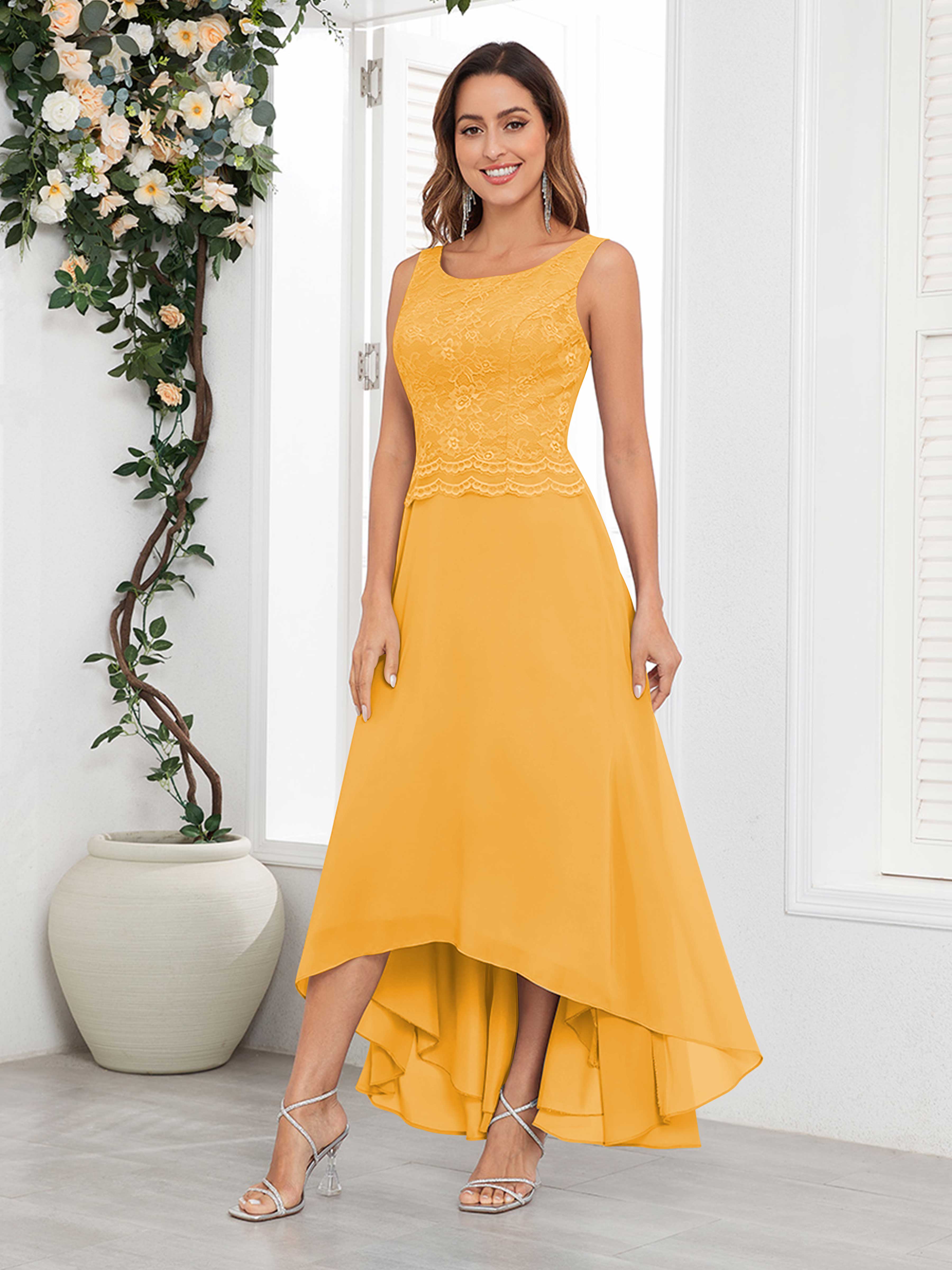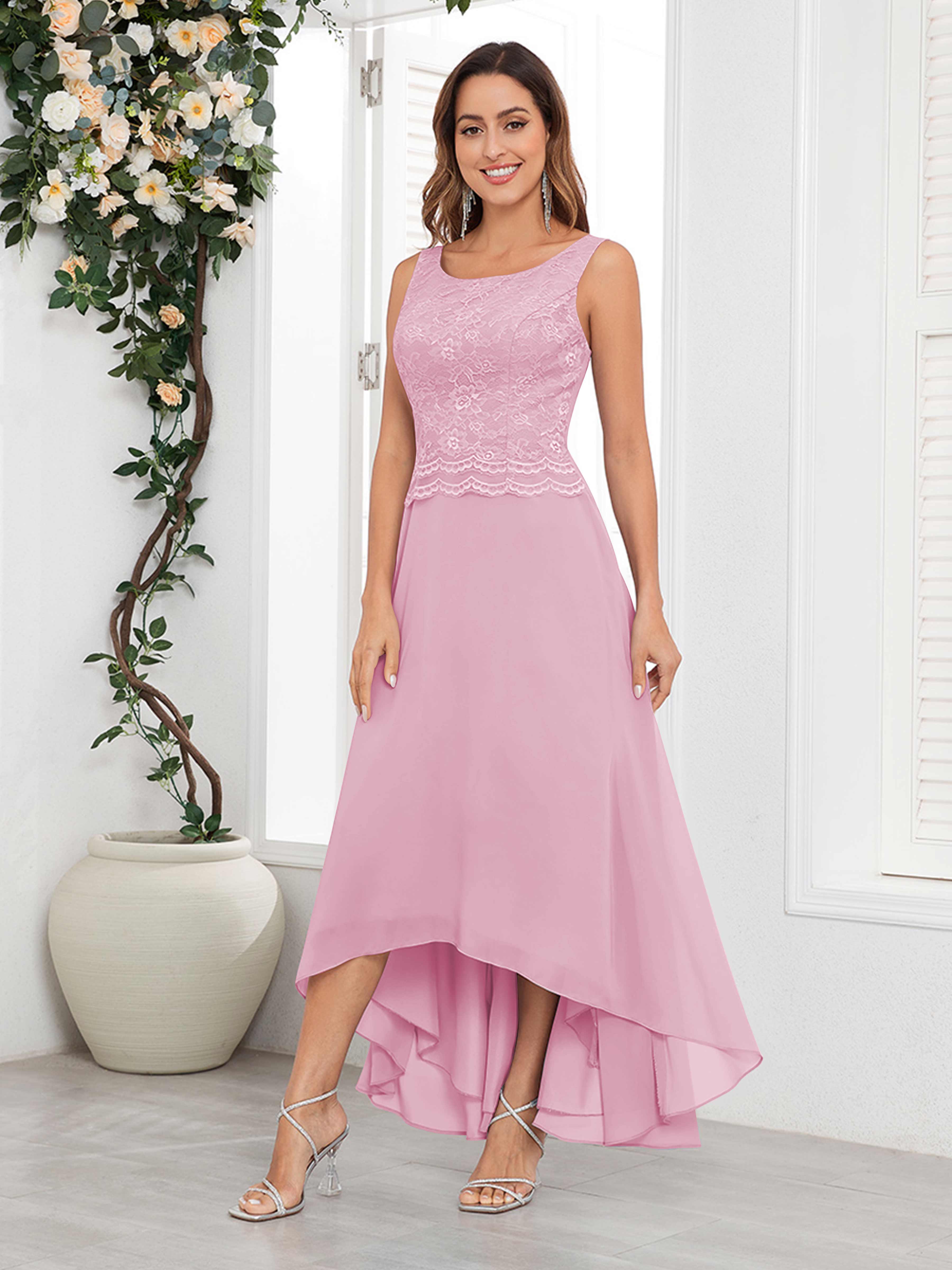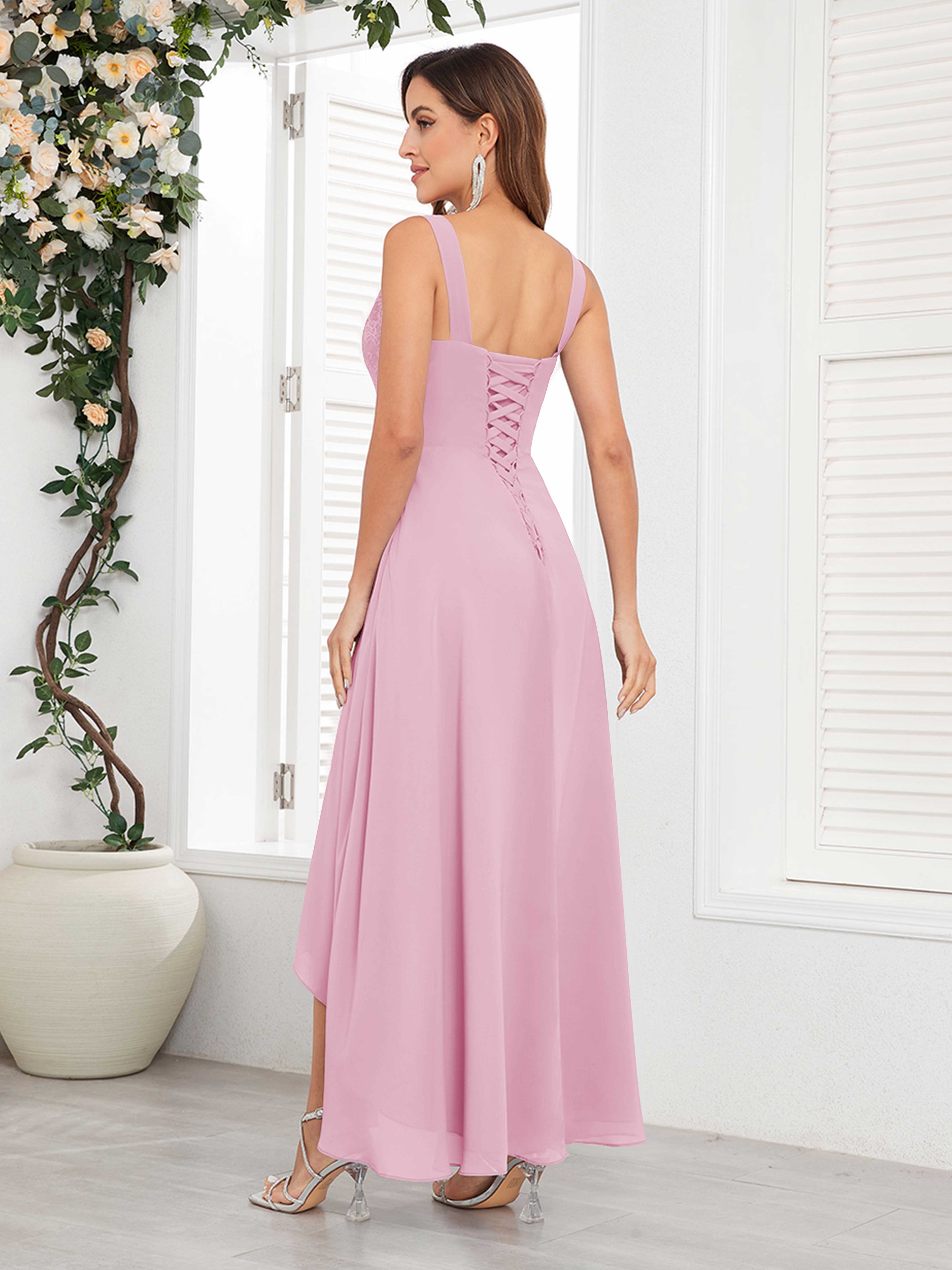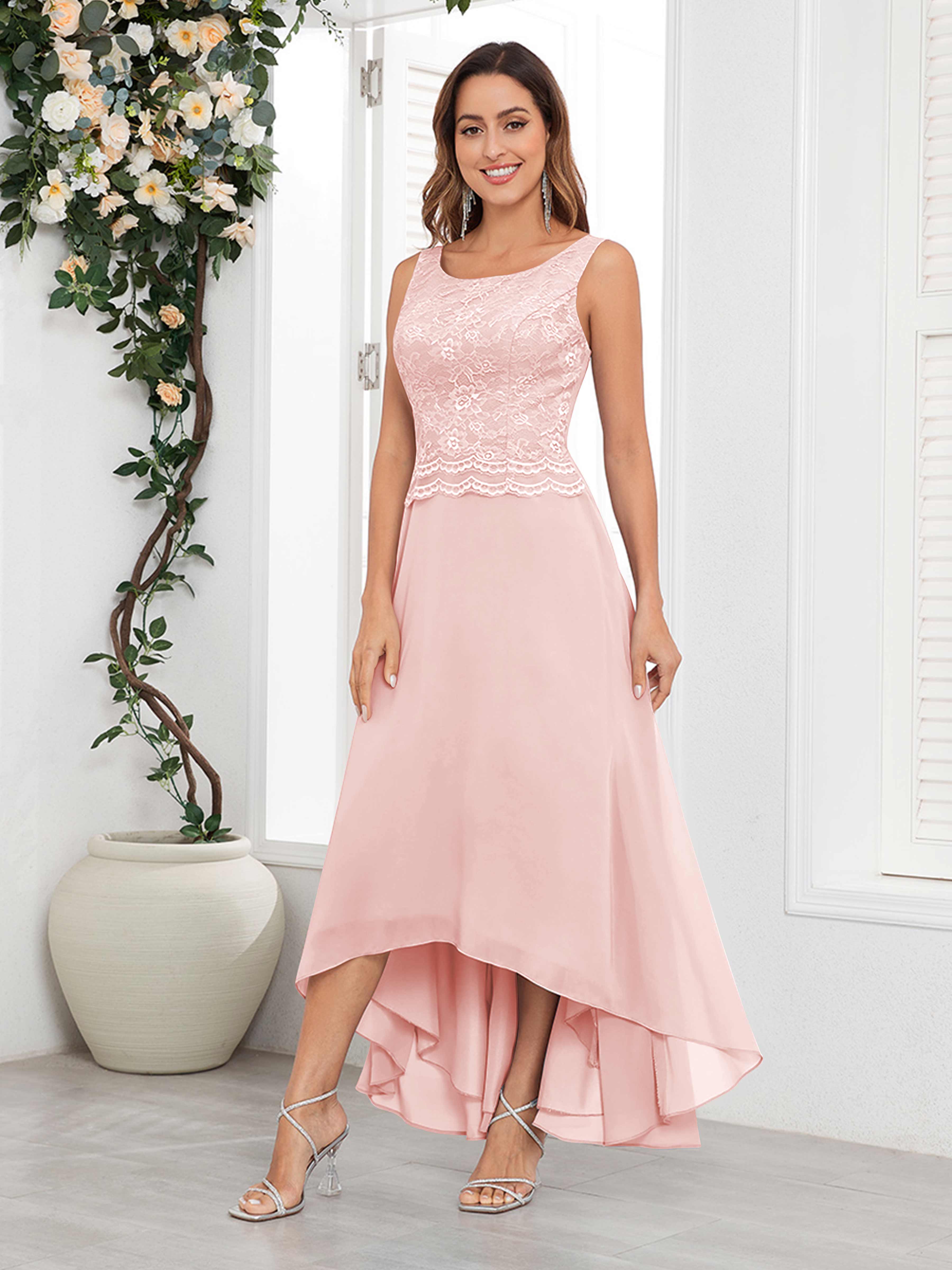 Sierra Delicate Two Pieces Lace Appliques High Low Chiffon Mother Of The Bride Dresses