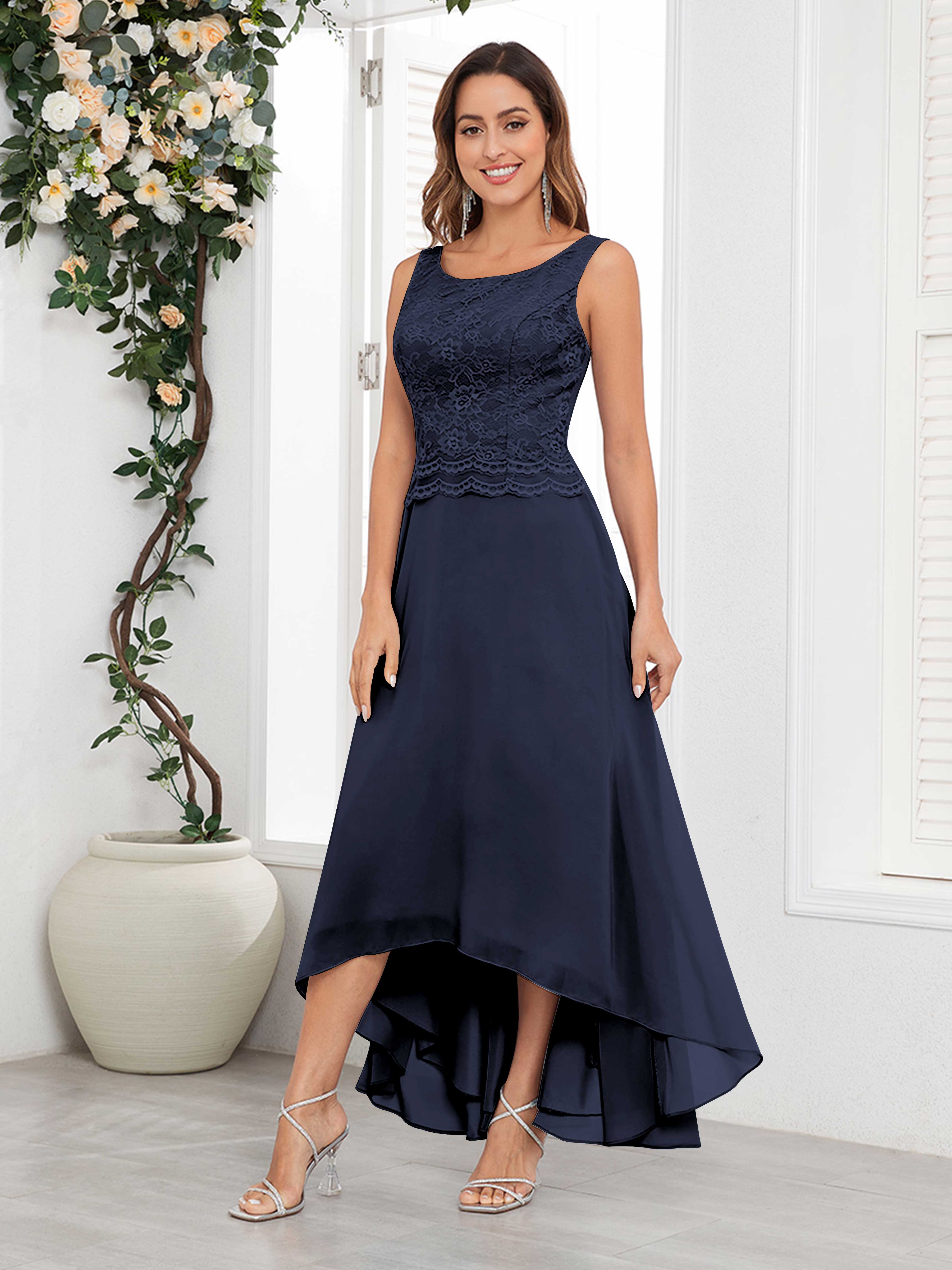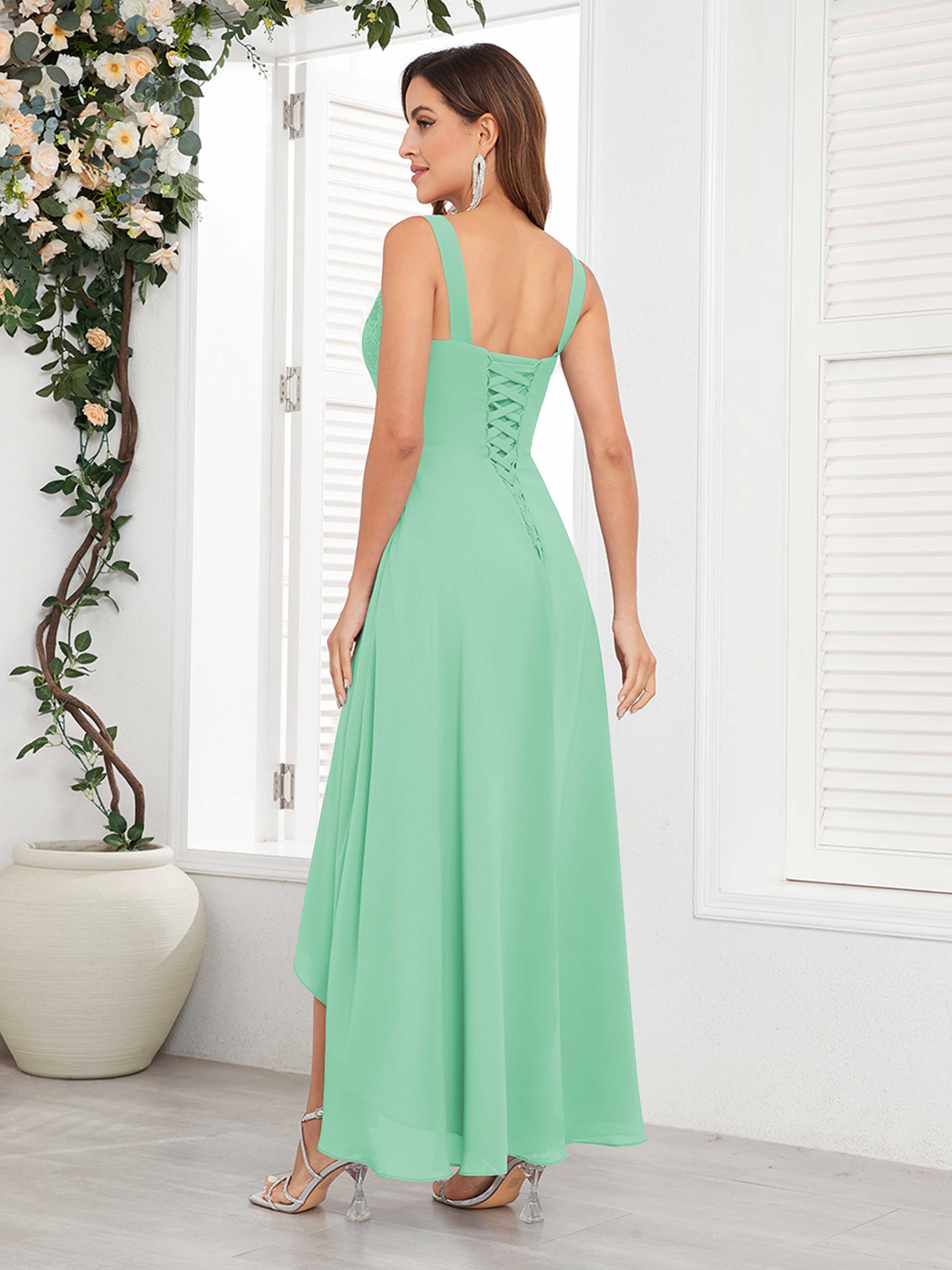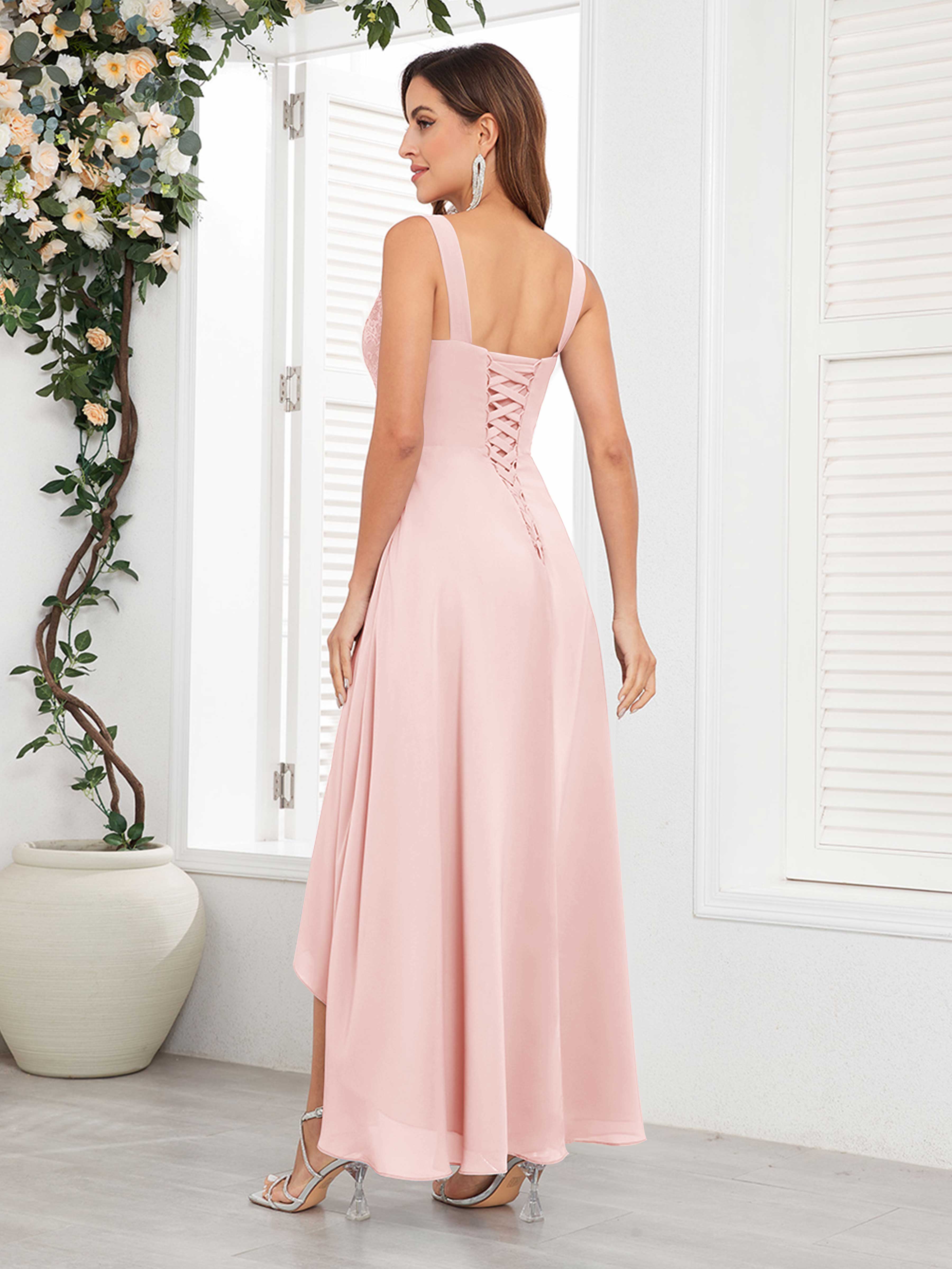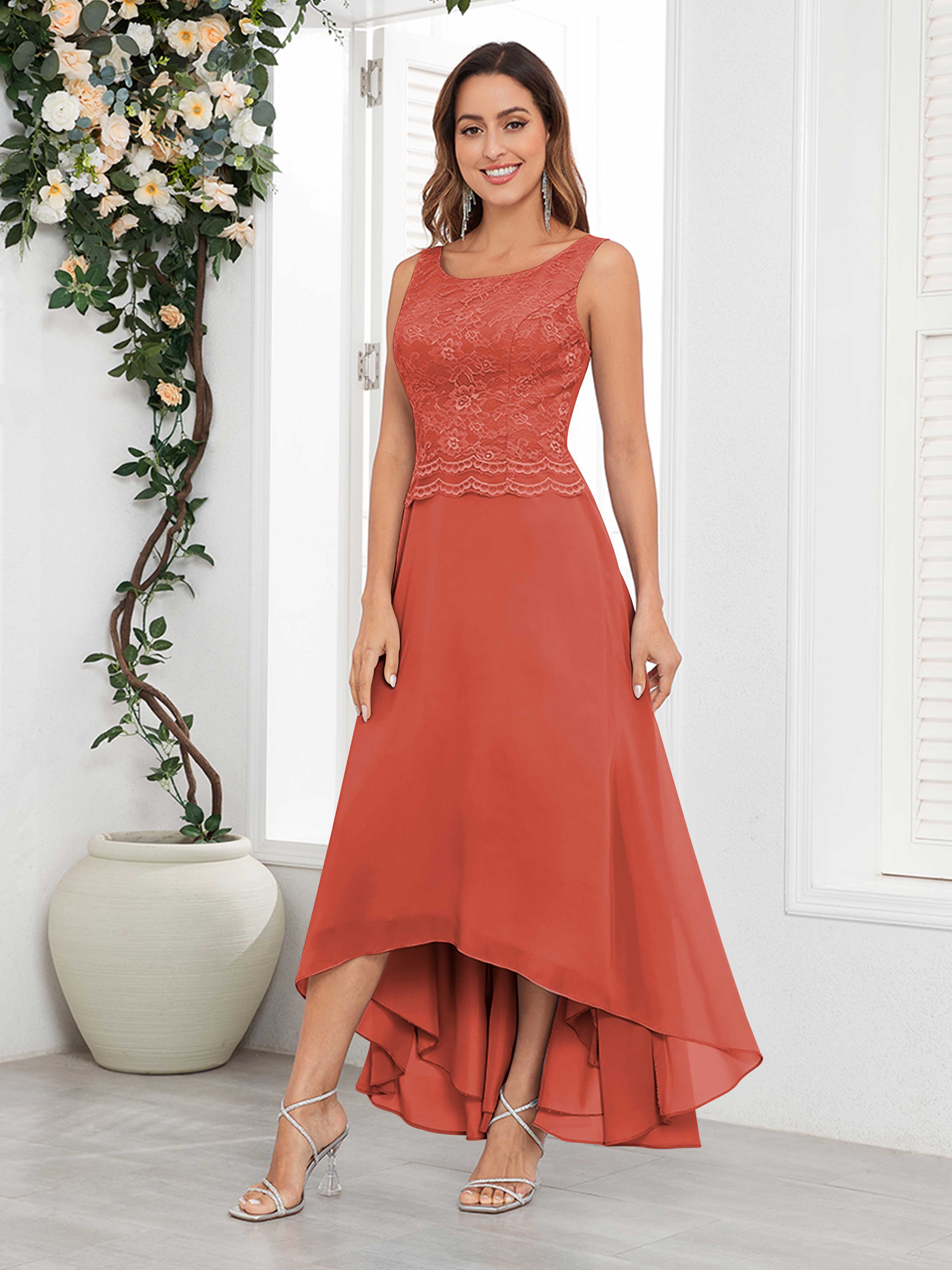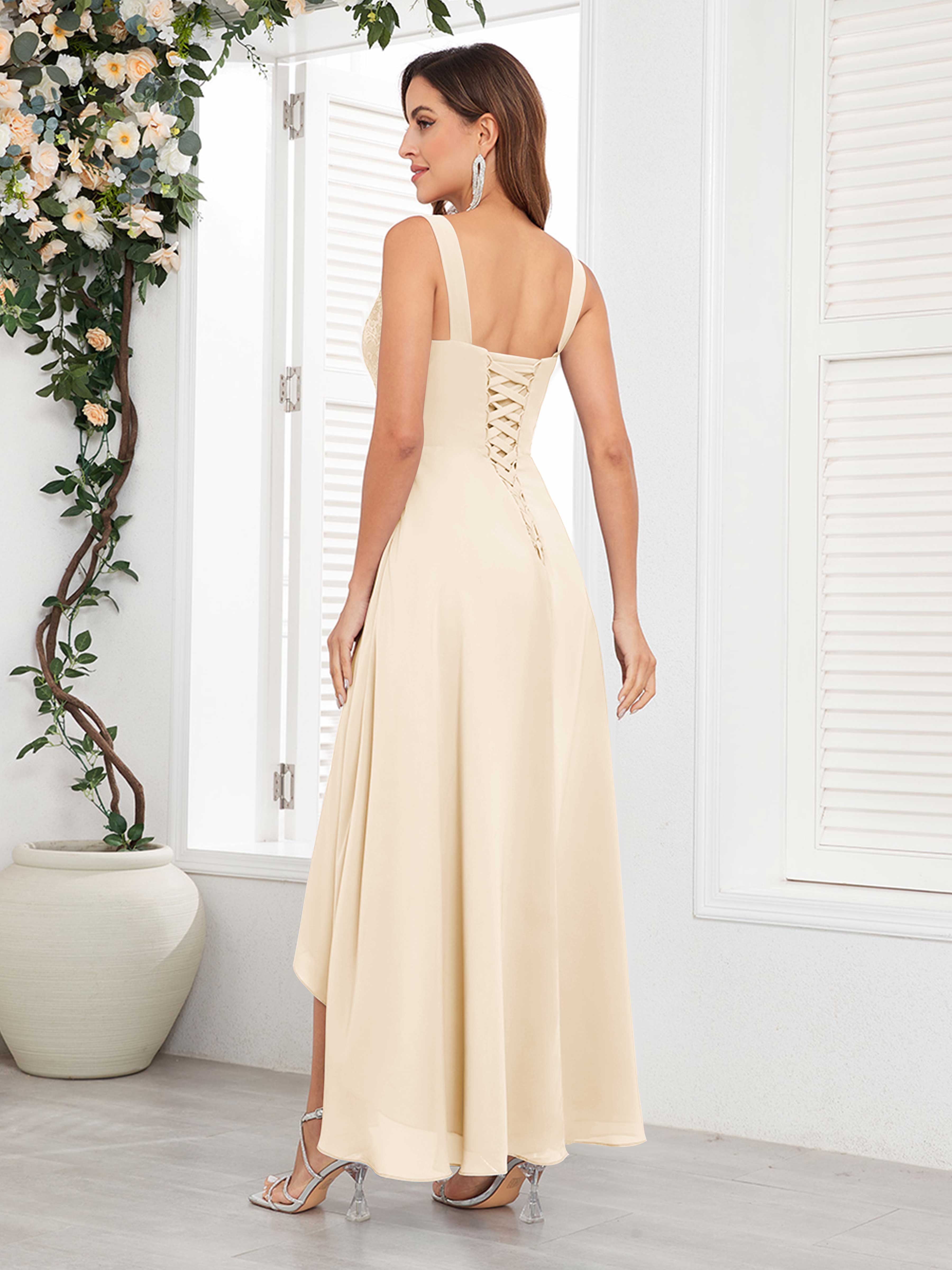 Sierra Delicate Two Pieces Lace Appliques High Low Chiffon Mother Of The Bride Dresses