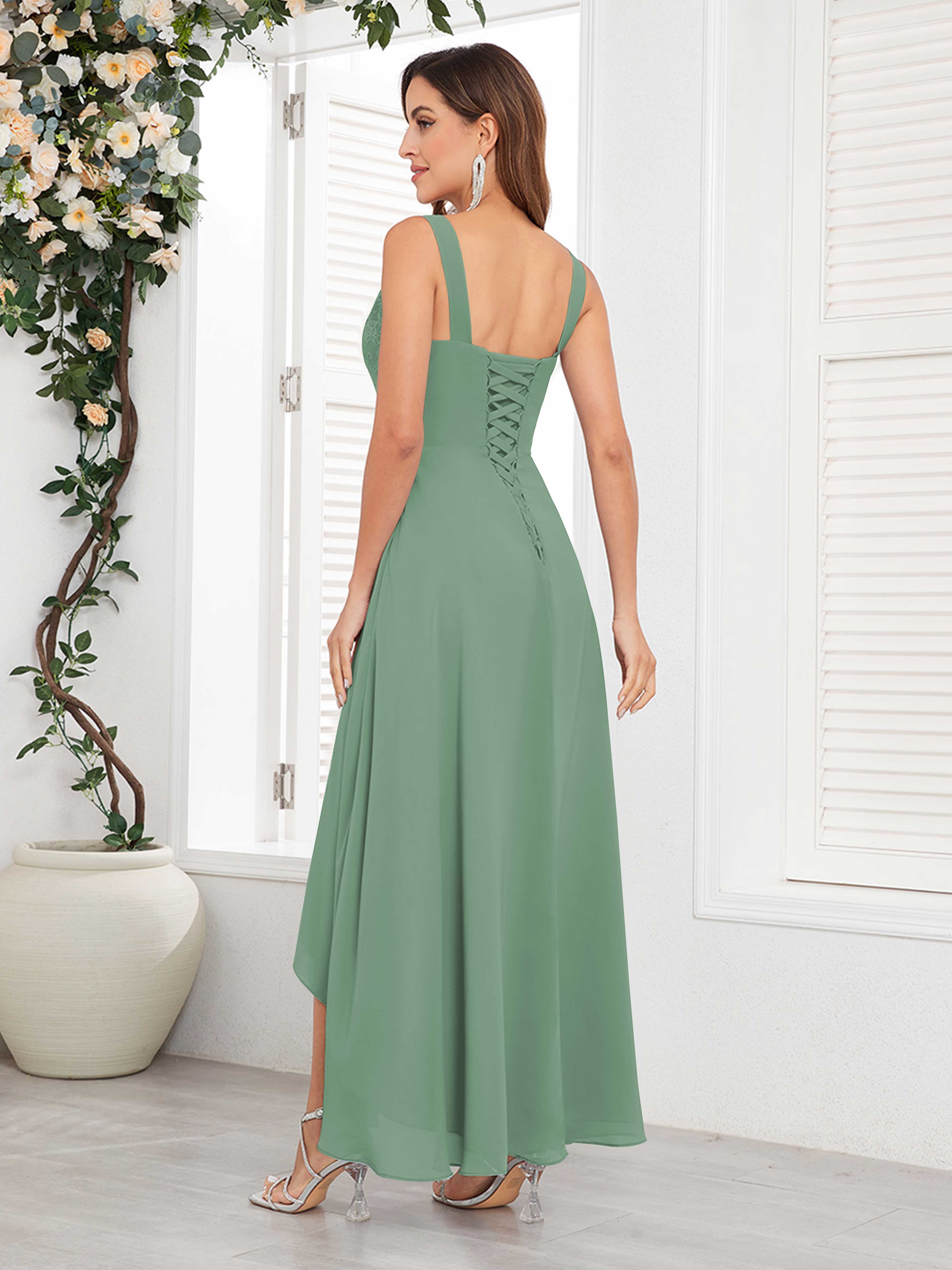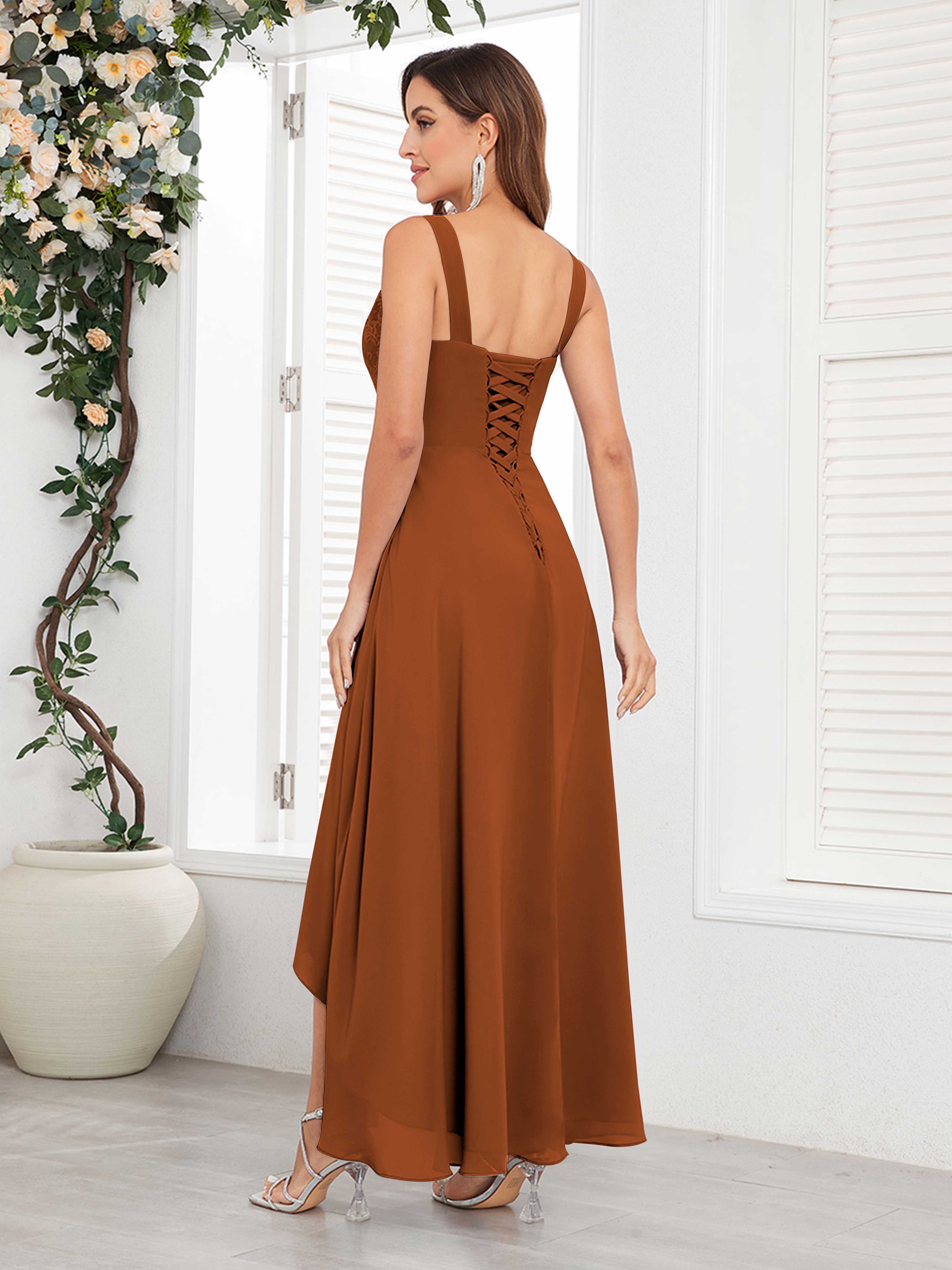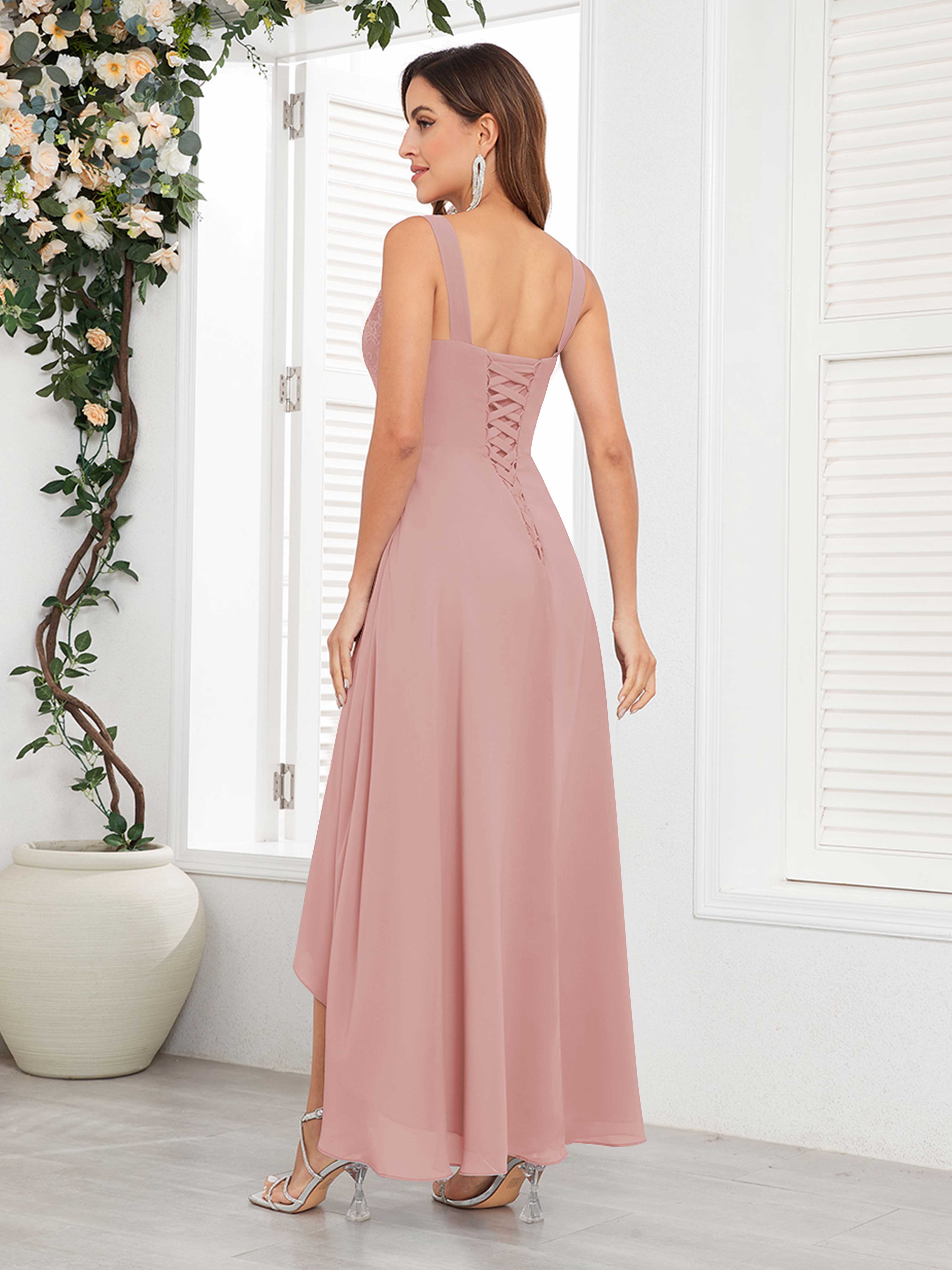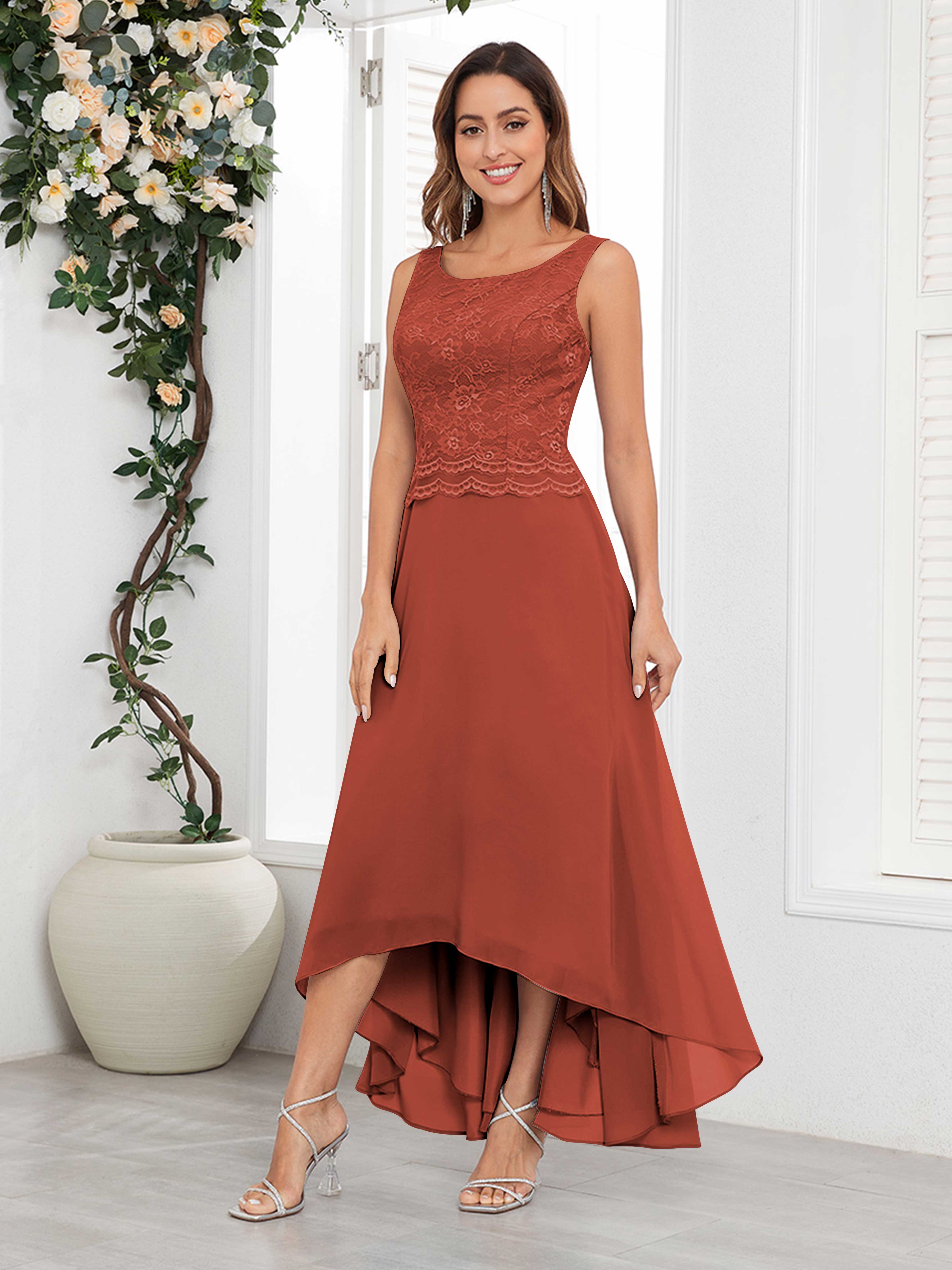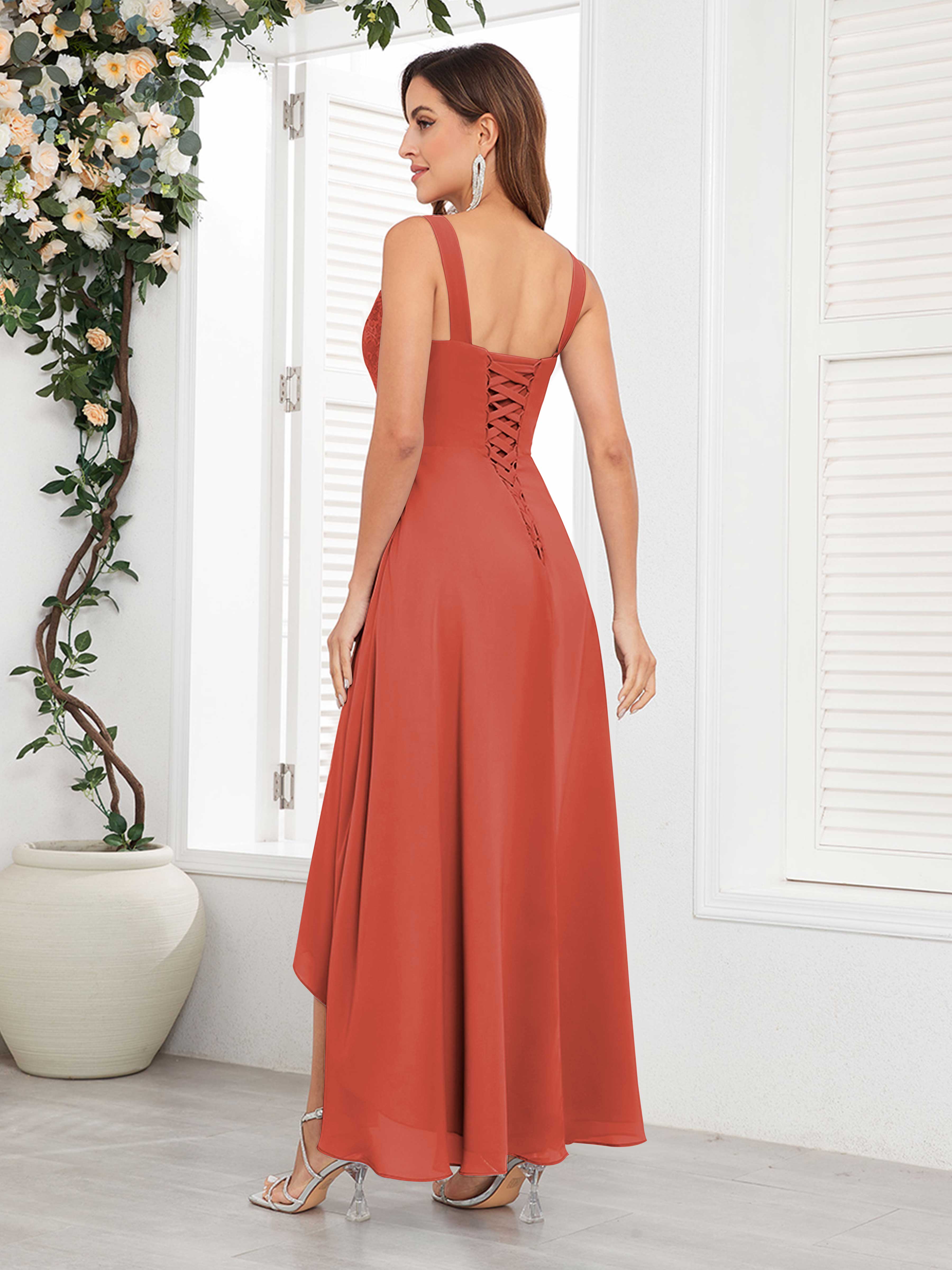 Sierra Delicate Two Pieces Lace Appliques High Low Chiffon Mother Of The Bride Dresses