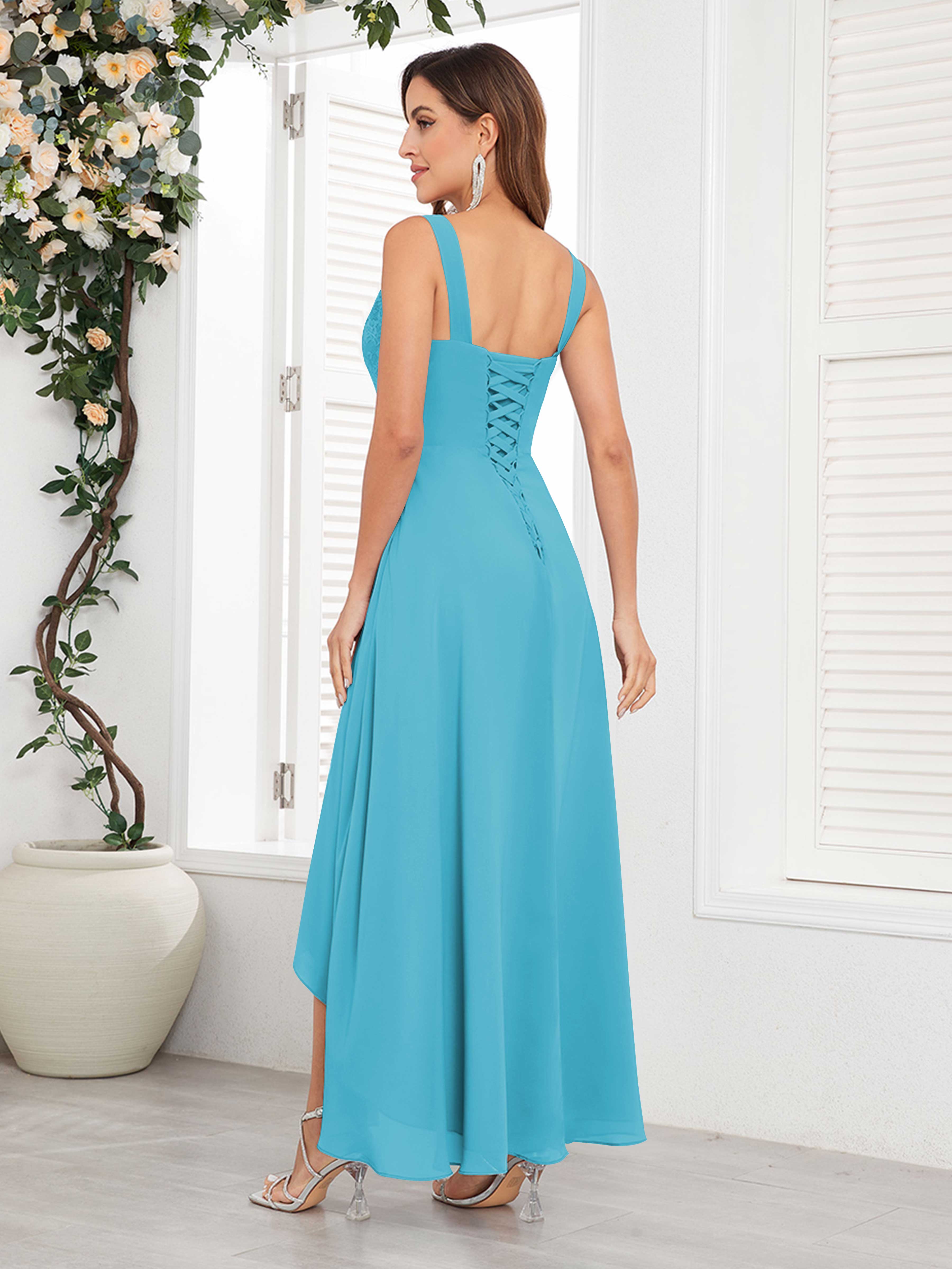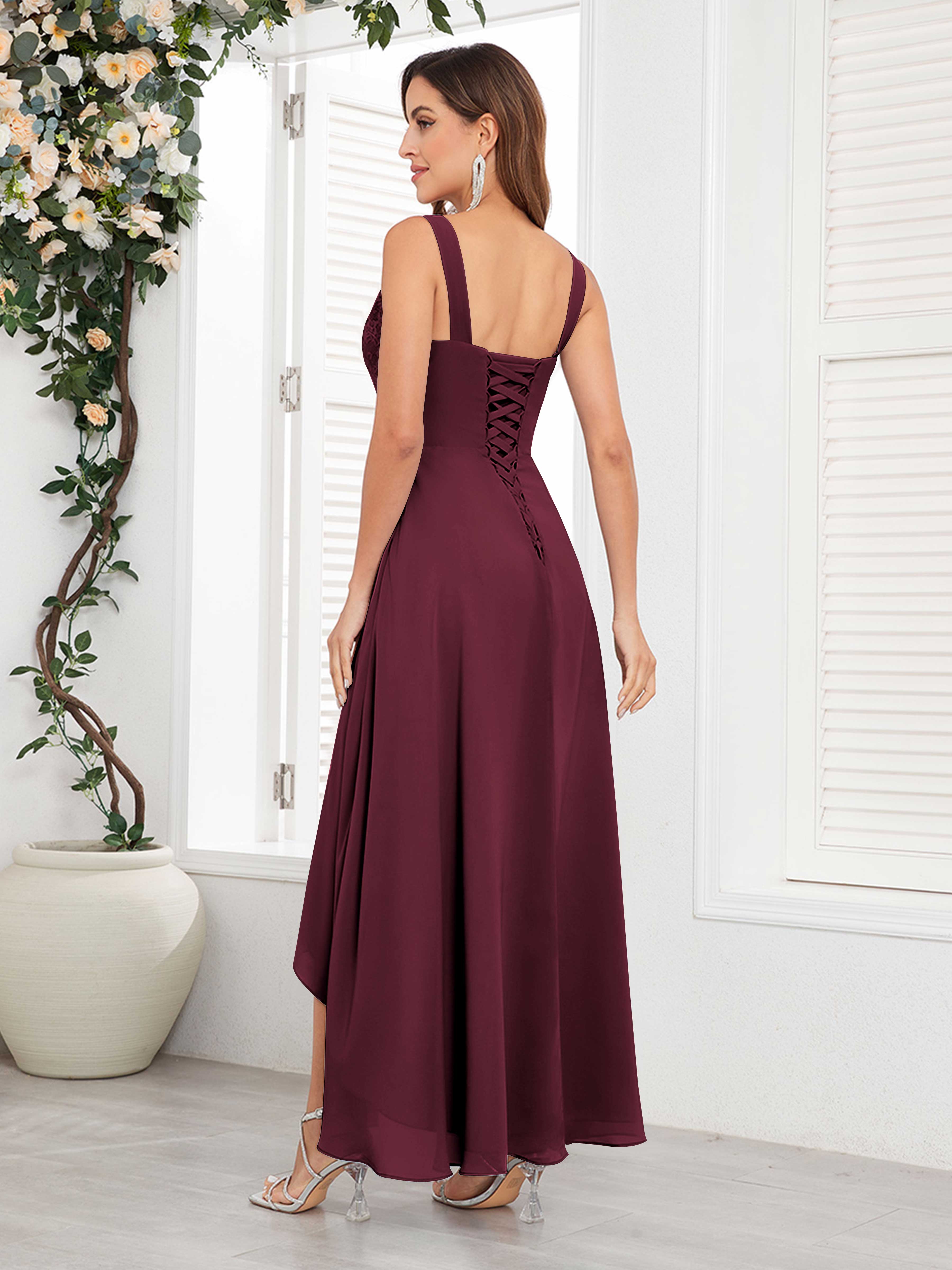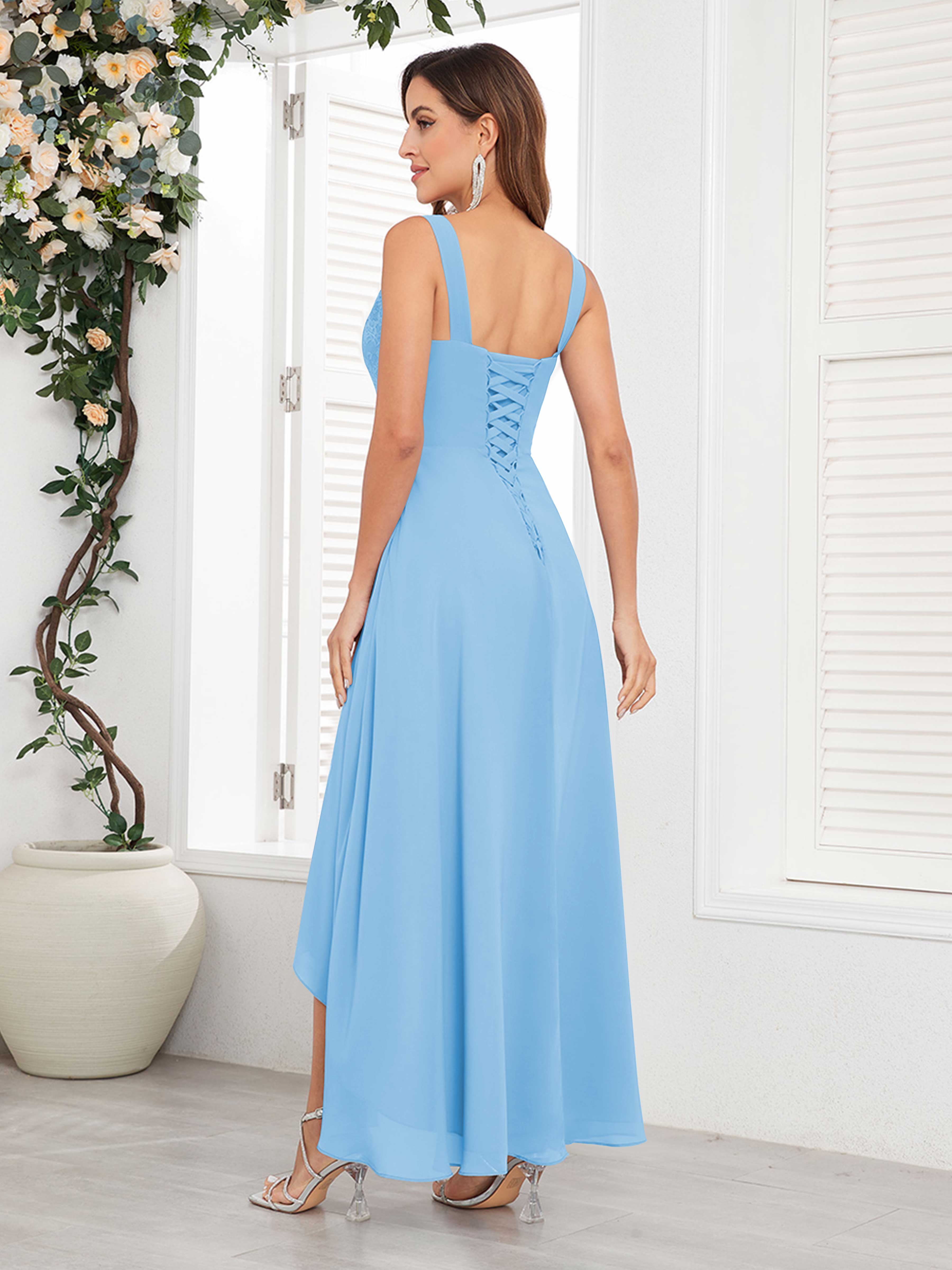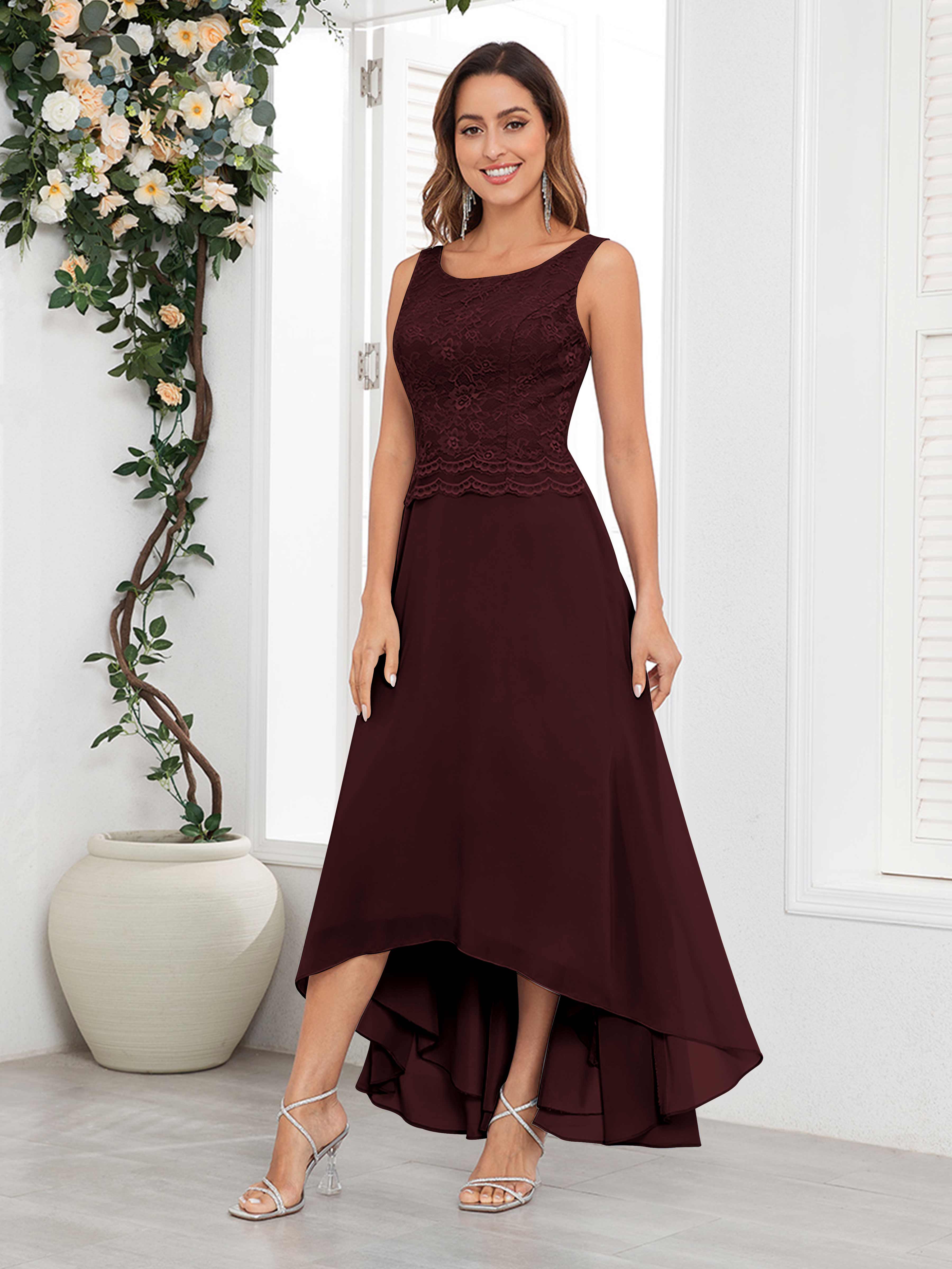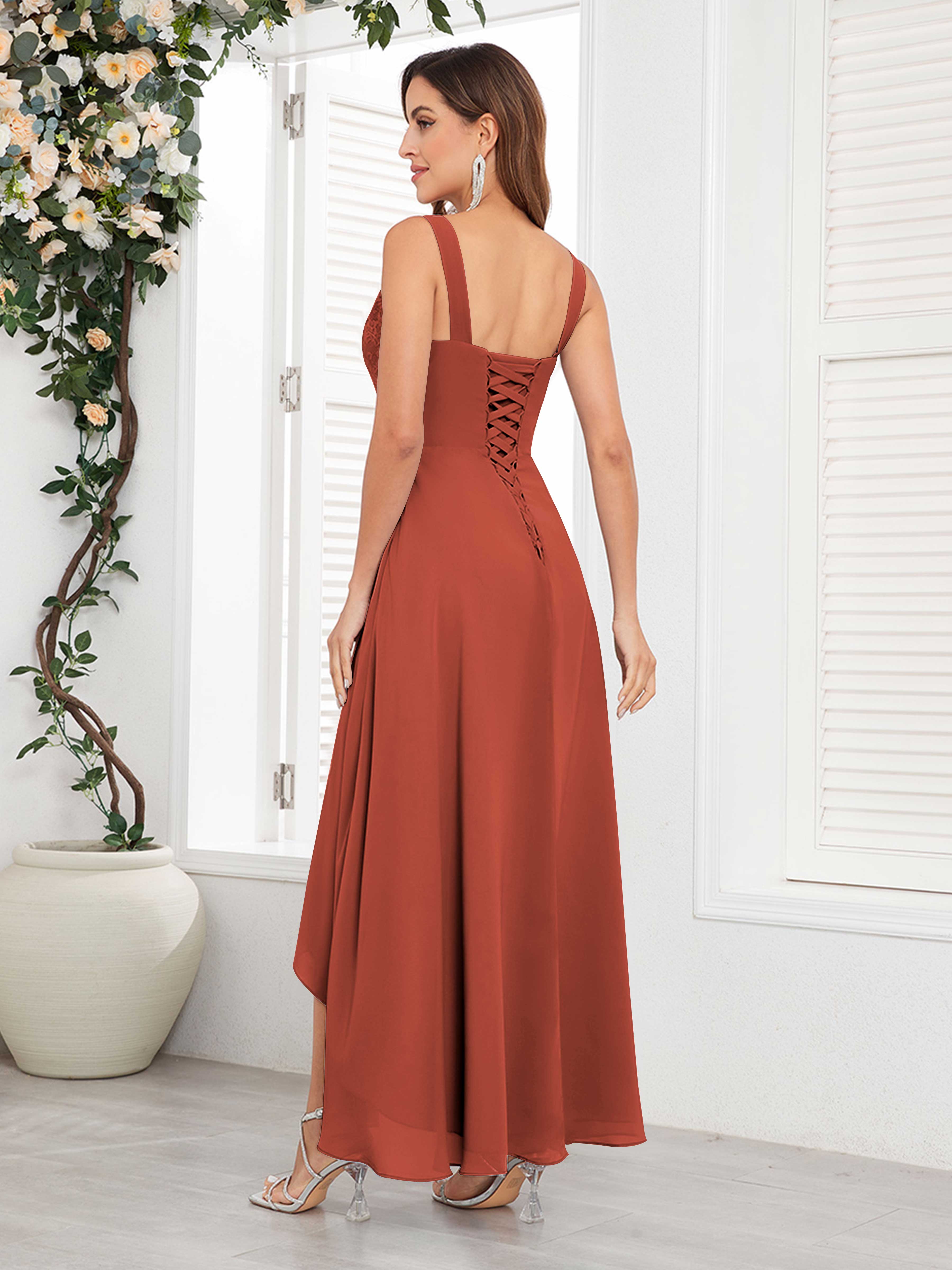 Sierra Delicate Two Pieces Lace Appliques High Low Chiffon Mother Of The Bride Dresses