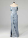Stunning Off the Shoulder Corset Slit Floor Length Glitter Prom Dresses