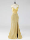 Stylish Mermaid Spaghetti Straps Corset Slit Long Prom Dresses